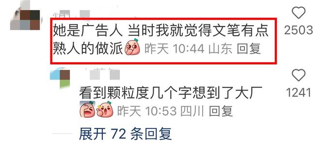 嘉嘉被网友爆料职业是广告公司文案,很多人一看颗粒度对齐这些话术,就知道她是搞互联网文案工作的业内人。