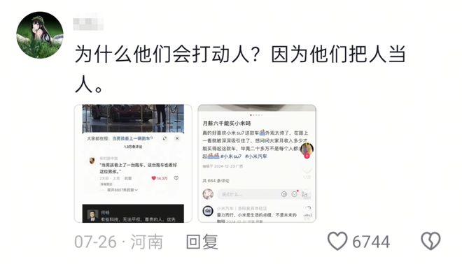 小米没有鼓吹消费主义,没有让消费者为了追求一辆车而背负沉重的债务,而是给出了 “量力而行,小米是生活的点缀,不是未来的枷锁” 这样的回复,这是站在消费者角度的贴心考量,主张理性购买,让人好感倍增。