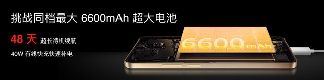 魅族 Note 16 拥有堪比旗舰手机的续航体验,采用 6600mAh 超大容量电池,是魅族迄今为止电池容量最大的手机,能够满足全天候全场景的使用需求,配合 40W 有线快速充电,极大降低续航焦虑感。